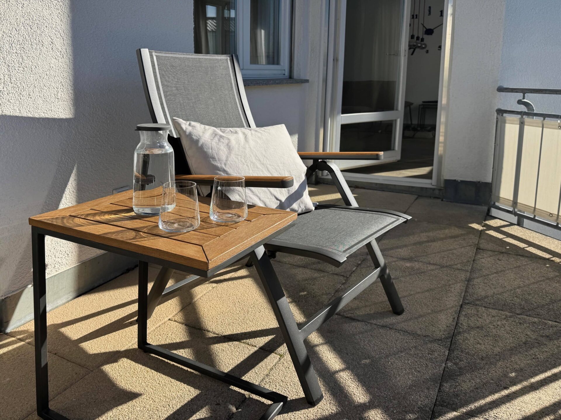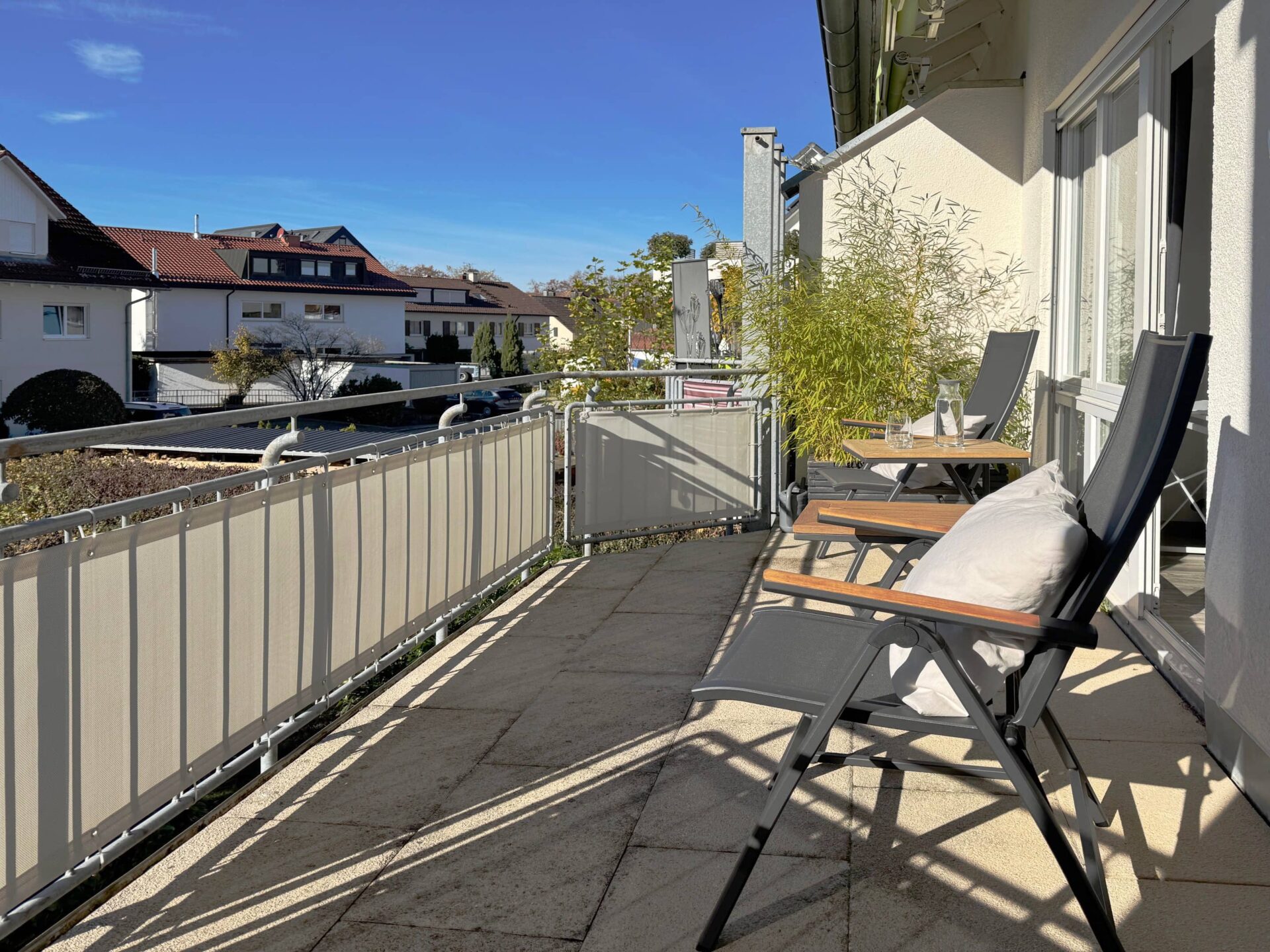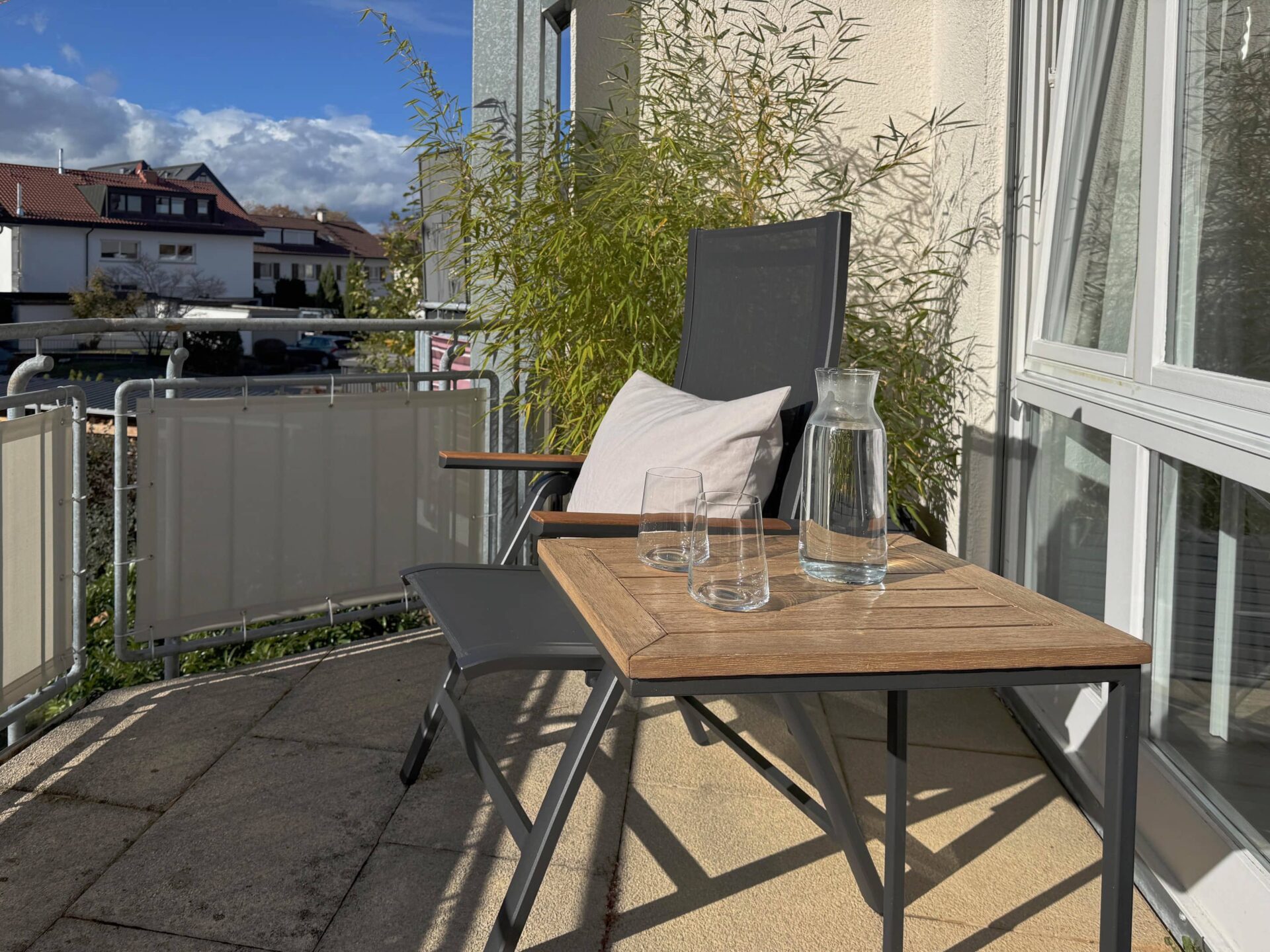 Helle, moderne Ferienwohnung mit Südbalkon in ruhiger Lage in Langenargen am Bodensee. Perfekt für Urlaub und „Workation“ mit schnellem Internet und komfortabler Ausstattung.